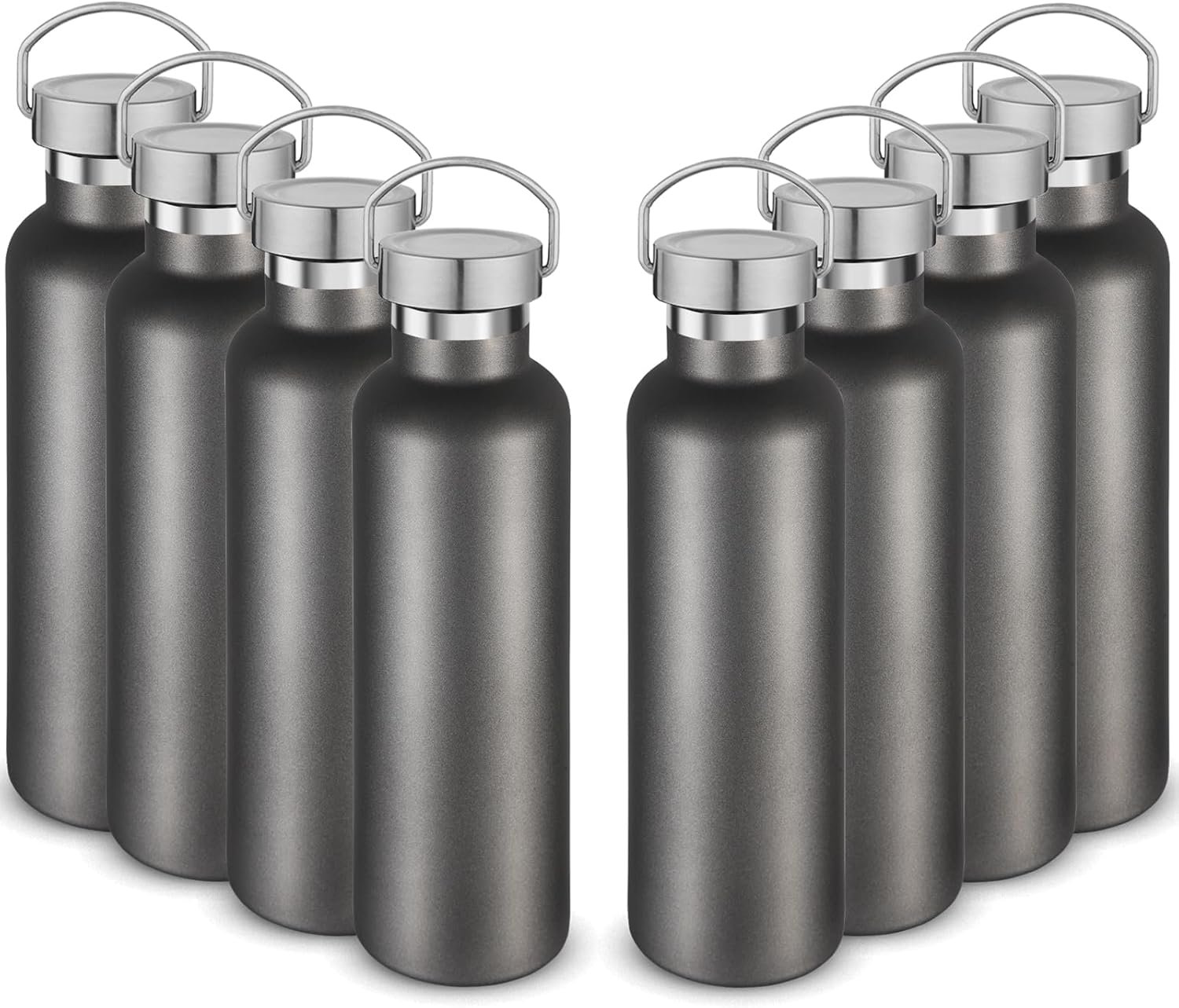 Volhoply 24oz Insulated Standard Mouth Water Bottle with Plastic & Stainless Steel Combination Lid Bulk 8 Pack, 304 18/8 Double Wall Vacuum Insulated Water Bottles, Reusable Metal Flask(Cold Grey,8)