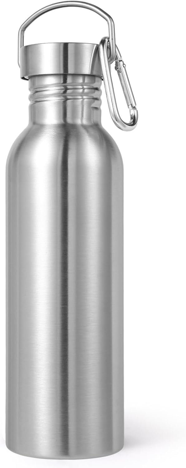 Volhoply 26oz Uninsulated Single Walled Water Bottle, Stainless Steel Reusable Water Bottles with Handle & Carabiner, BPA Free Wide Mouth Water Bottles for Gym Sports Camping(Sliver,1)