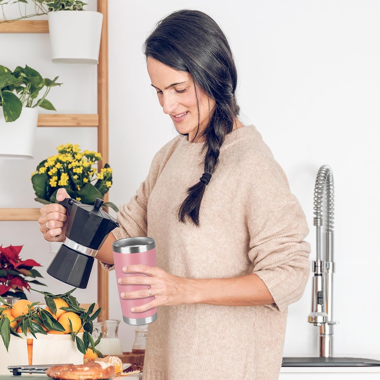 VQRRCKI 20 oz Tumbler Stainless Steel Tumblers Bulk with Lid Double Wall Insulated Coffee Tumbler Cups for Hot & Cold Drinks Powder Coated Travel Coffee Tumbler Mug Metal (Rose Pink, 6 pack)