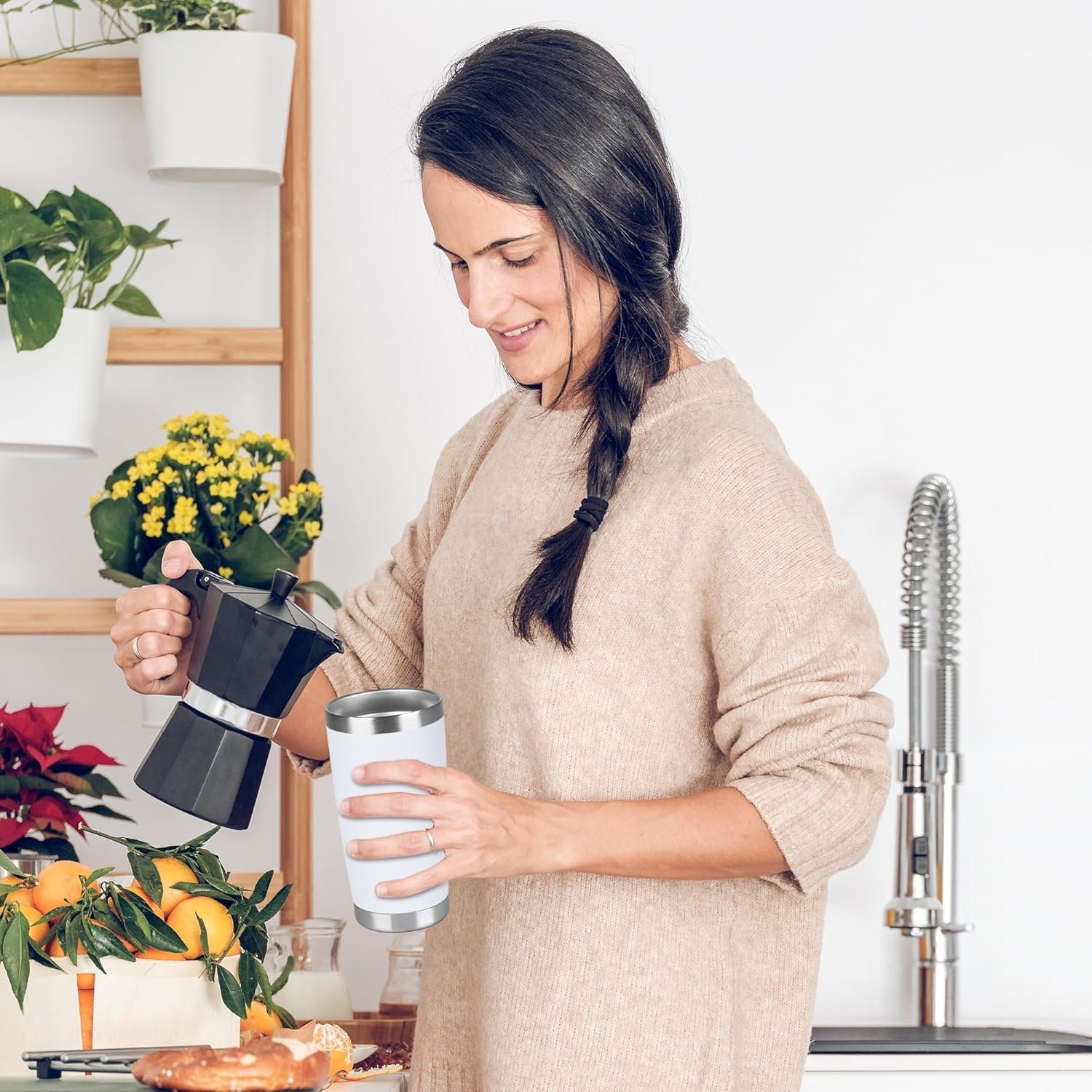 VQRRCKI 20 oz Tumbler Stainless Steel Tumblers Bulk with Lid Double Wall Insulated Coffee Tumbler Cups for Hot & Cold Drinks Powder Coated Travel Coffee Tumbler Mug Metal (White, 1 pack)