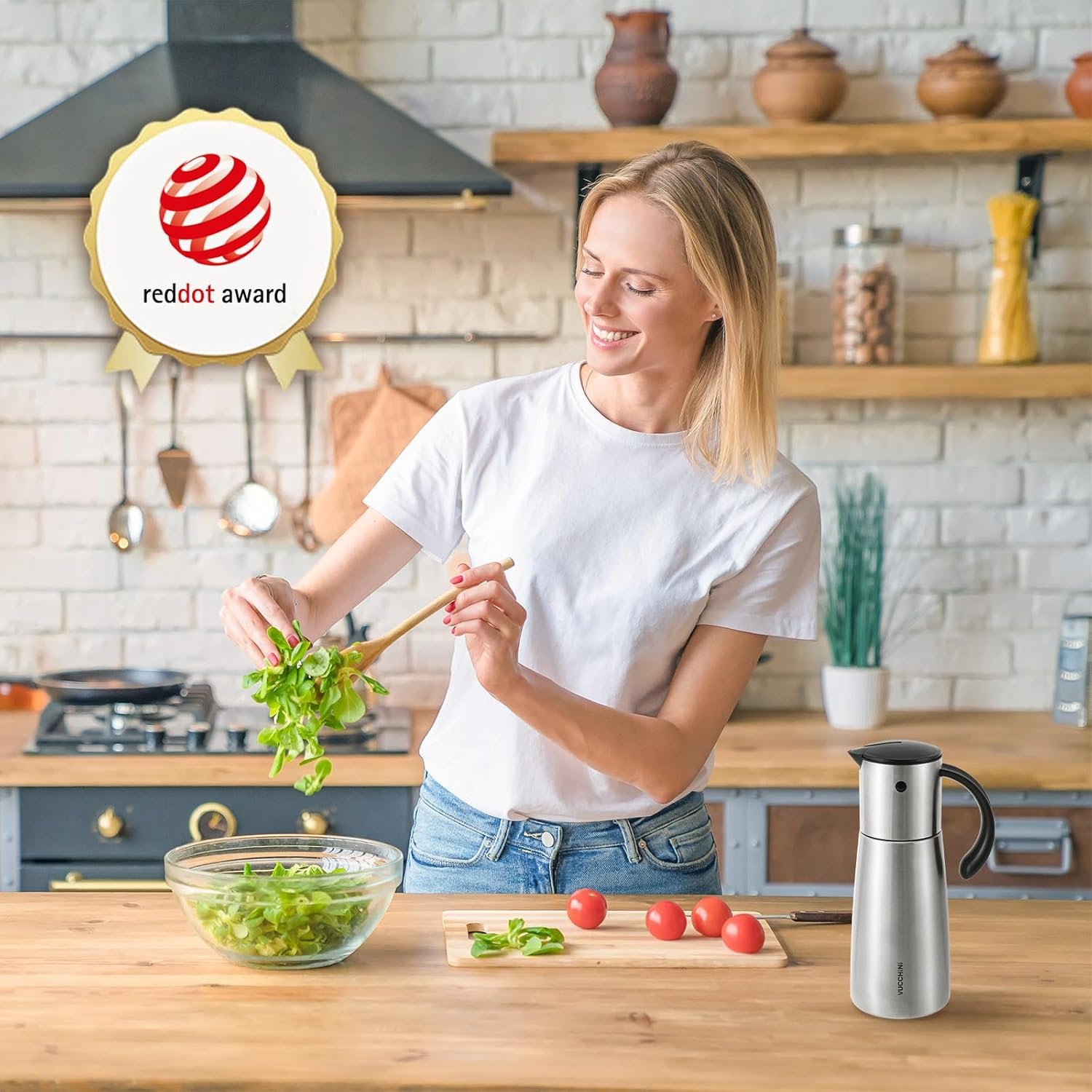 Vucchini Oil Dispenser Bottle Stainless Steel-Auto Flip Kitchen Oil and Vinegar Dispenser Set With Automatic Cap and Stopper – 12.8 oz Non-drip Spout Cruet Bottle