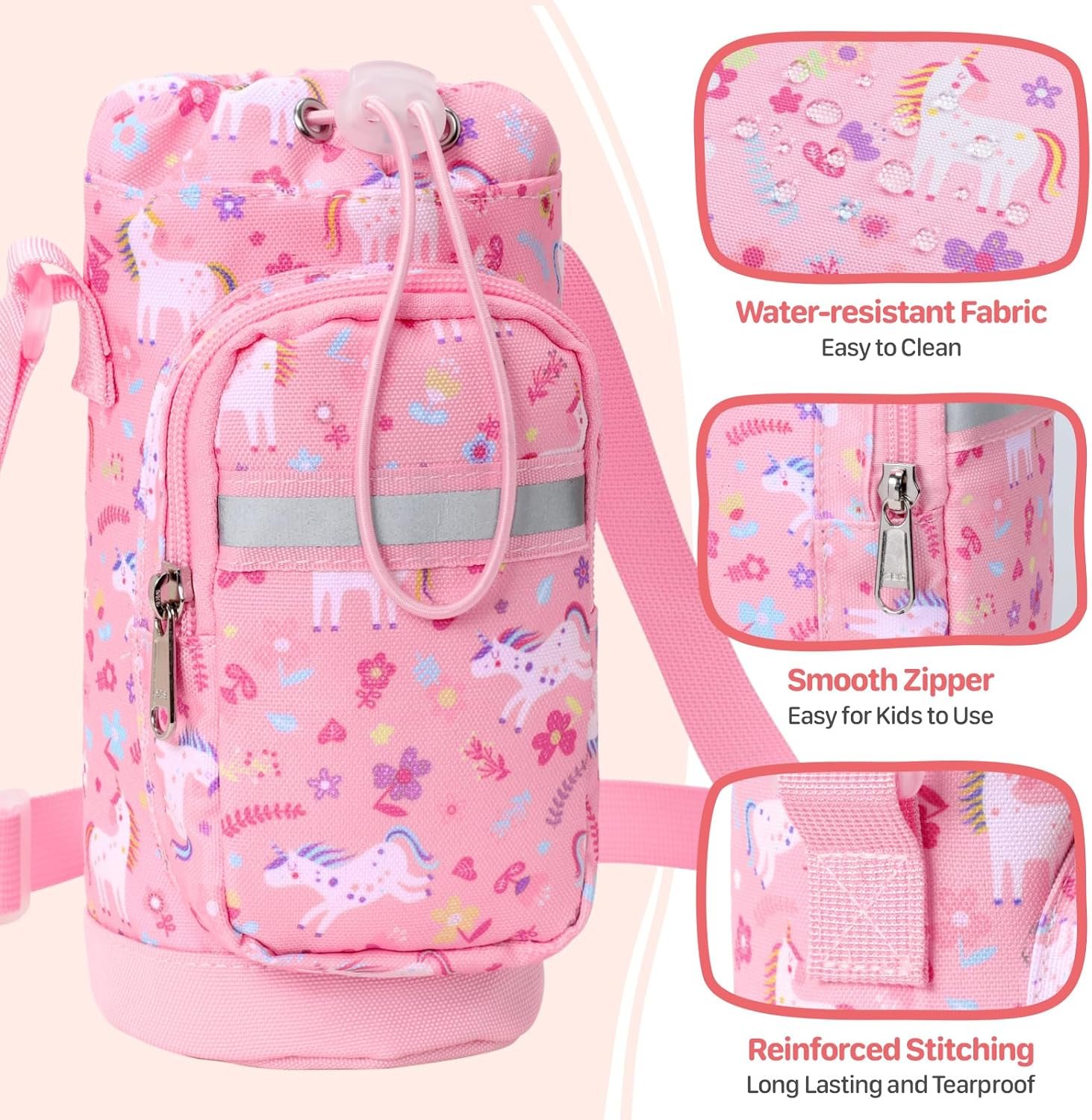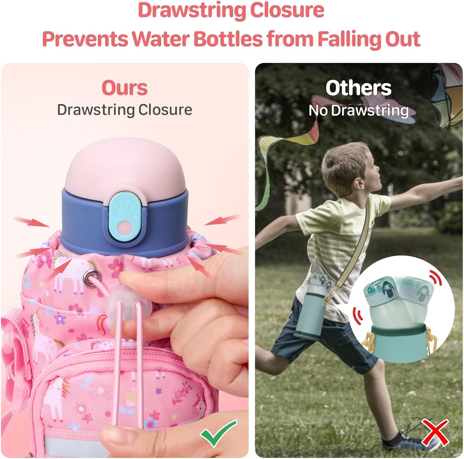 Water Bottle Carrier for Kids – Water Bottle Holder with Strap, Boys Girls Water Bottle Sling Bag for 10/12/14/16/18Oz Water Bottles Walking Hiking Camping