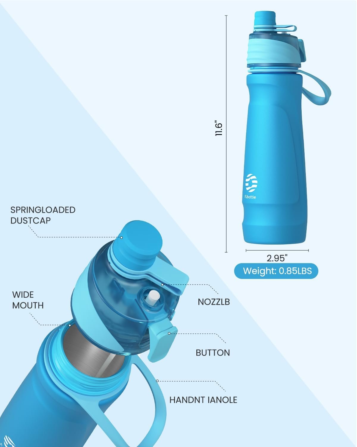 Stay refreshed and hydrated with this versatile water bottle featuring a misting function to cool you down and a drinking spout for easy sipping.