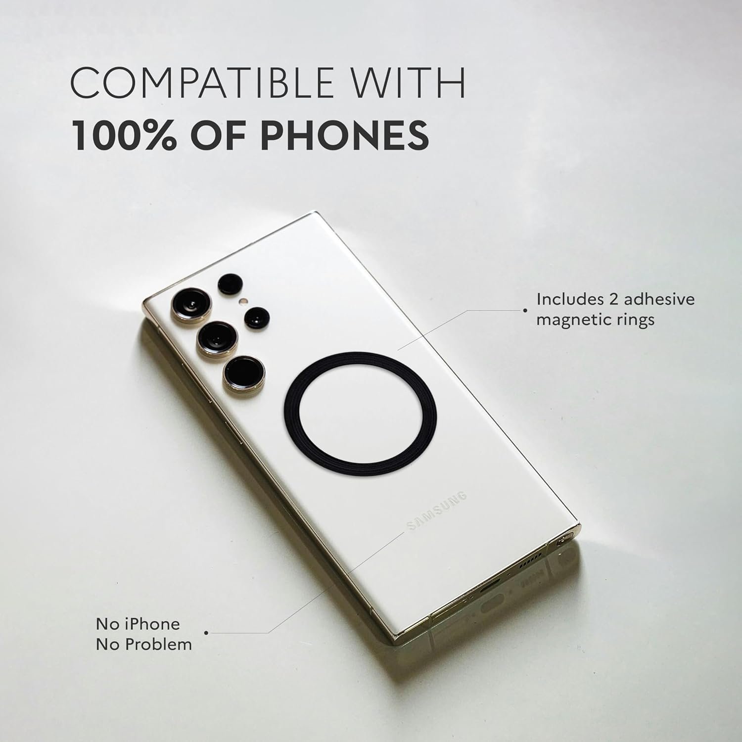 iPhone 16 / 15 / 14 / 13 / 12: Yes, directly compatible.MagSafe Cases: Compatible through your MagSafe case.Other models: Use the included kit (2 adhesive magnetic rings) to make your phone MagSafe-compatible.