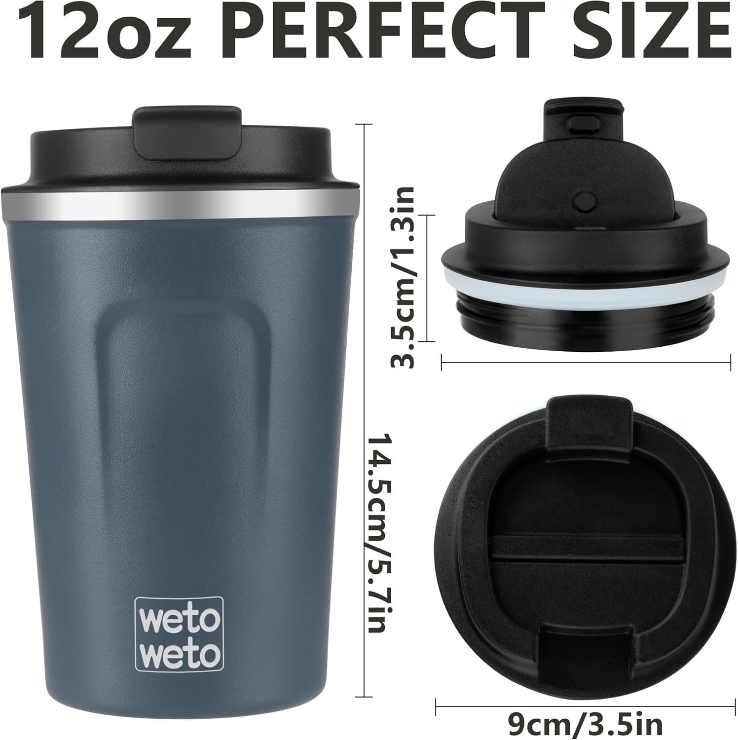 [ Reliable Screw-on Leak-proof Lid ] – Wetoweto’s 12oz coffee cup comes with an upgraded sealing screw-on lid effectively prevents spills and leaks. Travel mug with a drinking hole at the top for easy sipping, it is the most reliable choice to use when you are commuting or traveling.