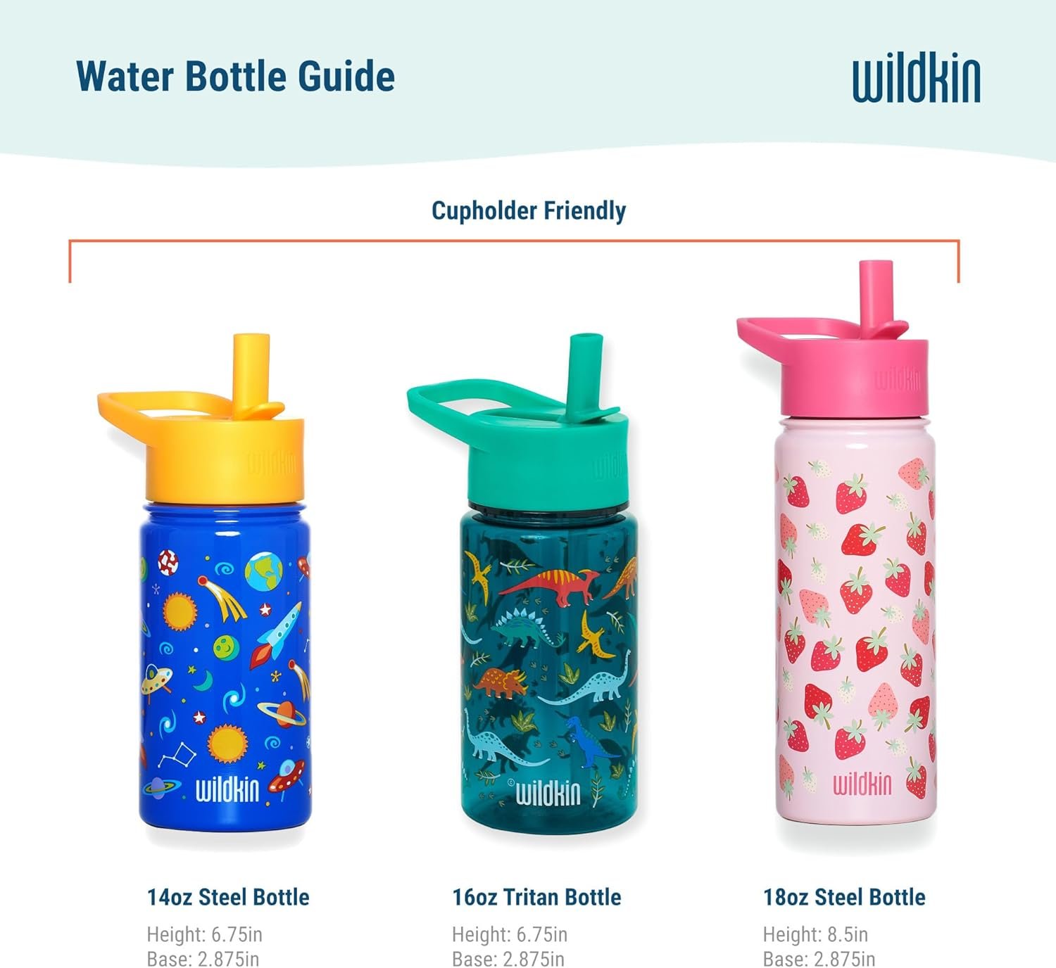 Hydrate In Style – Keep your little one hydrated with our Wildkin kids water bottle! Parent-approved 16 oz water bottle with straw sized at 6.75 x 2.875 x 2.875 inches combined with eye-catching designs that your kids will love.