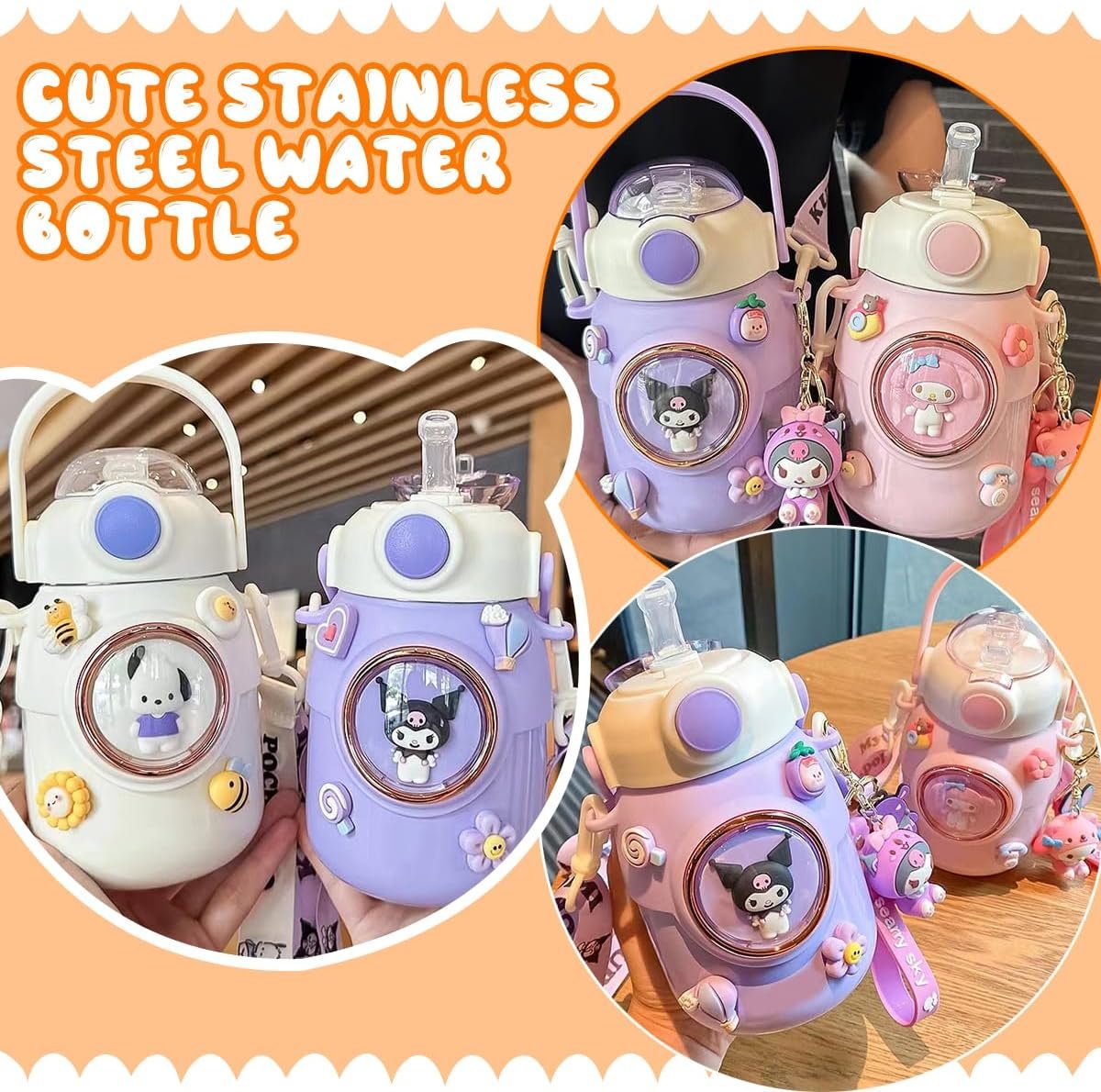 Cute Style Design: Our Woskailly cute stainless steel water bottle have 5 different colors for you to choose. The cute water bottle comes with adjustable shoulder straps and cute decorations, as well as a cartoon keychain, easy to carry, the lid is designed with a sealing ring to ensure that water does not leak during the shaking process, ensuring a comfortable trip.
