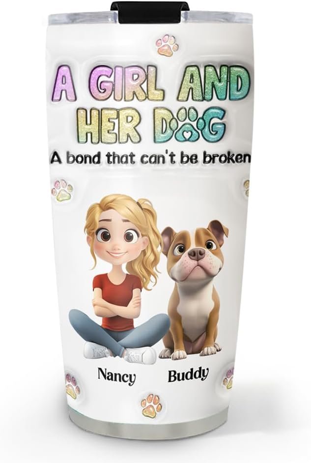Wrappiness A Girl And Her Dog Personalized Tumbler with 3D Inflated Effect – Gifts for Dog Moms Women on Mothers Day Christmas Birthday 20Oz Tumbler for Fur Mama Pet Lovers Pawma Travel Coffee Cup