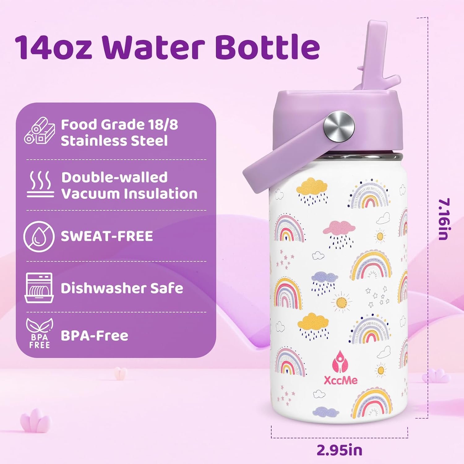 Finding a safe, kid-loved water bottle is easy with the XccMe 14 oz Kids Insulated Stainless Steel Bottle with Straw Lid. Designed for toddlers, boys, and girls, it blends safety, leak-proof performance, long-lasting insulation, and playful style—perfect for school, travel, camping, or daily use.