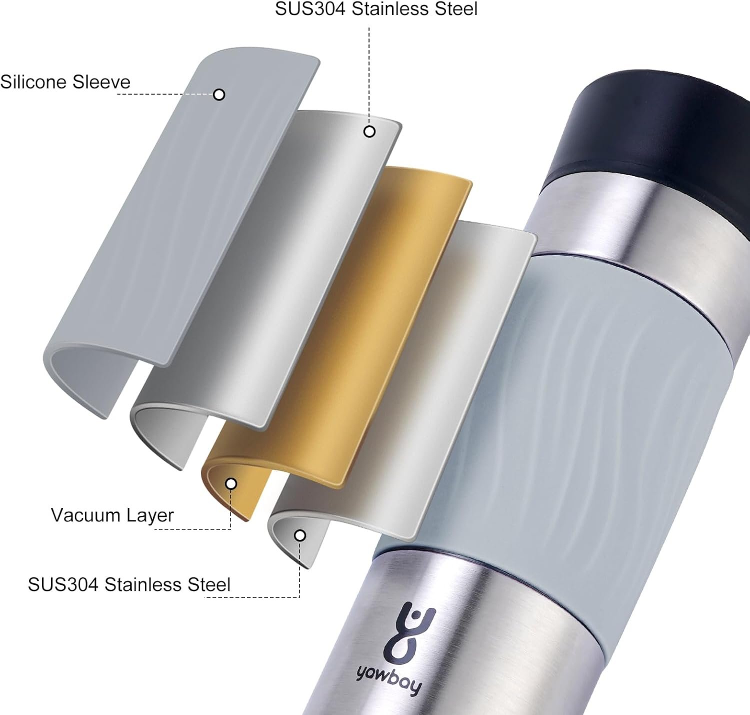 Yawbay Travel Coffee Mug with 360°Lid, Travel Coffee Tumbler 16 oz Leak Proof, Stainless Steel Insulated Travel Mugs for Hot and Cold Spill Proof Leak Proof(Grey)