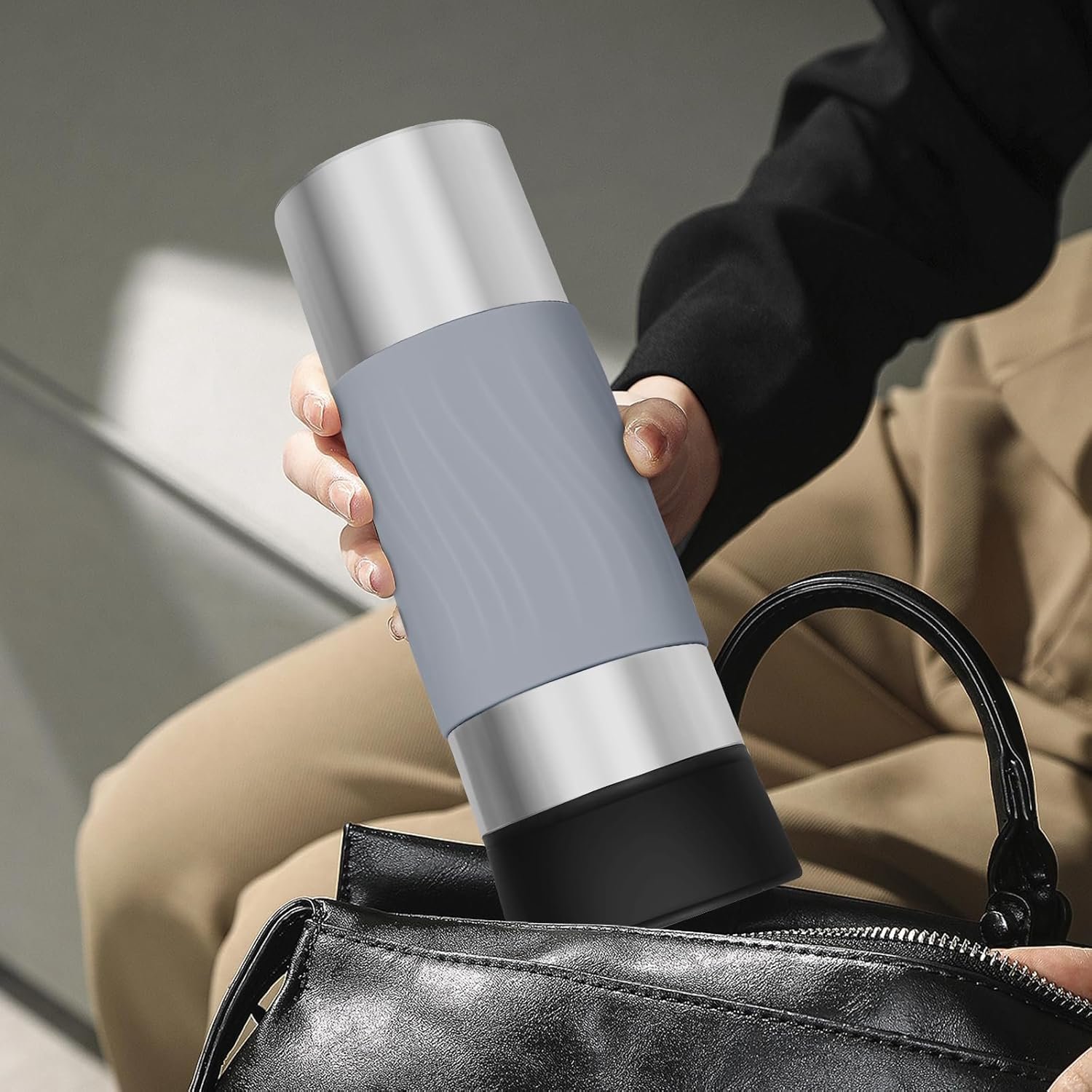 【Easy to Hold with Non-Slip Silicone】- Designed with non-slip silicone cover and ruber cushion on bottom of travel coffee mug, you can easily hold this travel coffee mug without worry of slippery and tough to hold onto with wet hands or with gloves. Also with its right size you can perfectly put in your car cup holder, at your coffee maker, or anywhere you want to take and use like home, gym, library, travel or any outdoor indoor activities!
