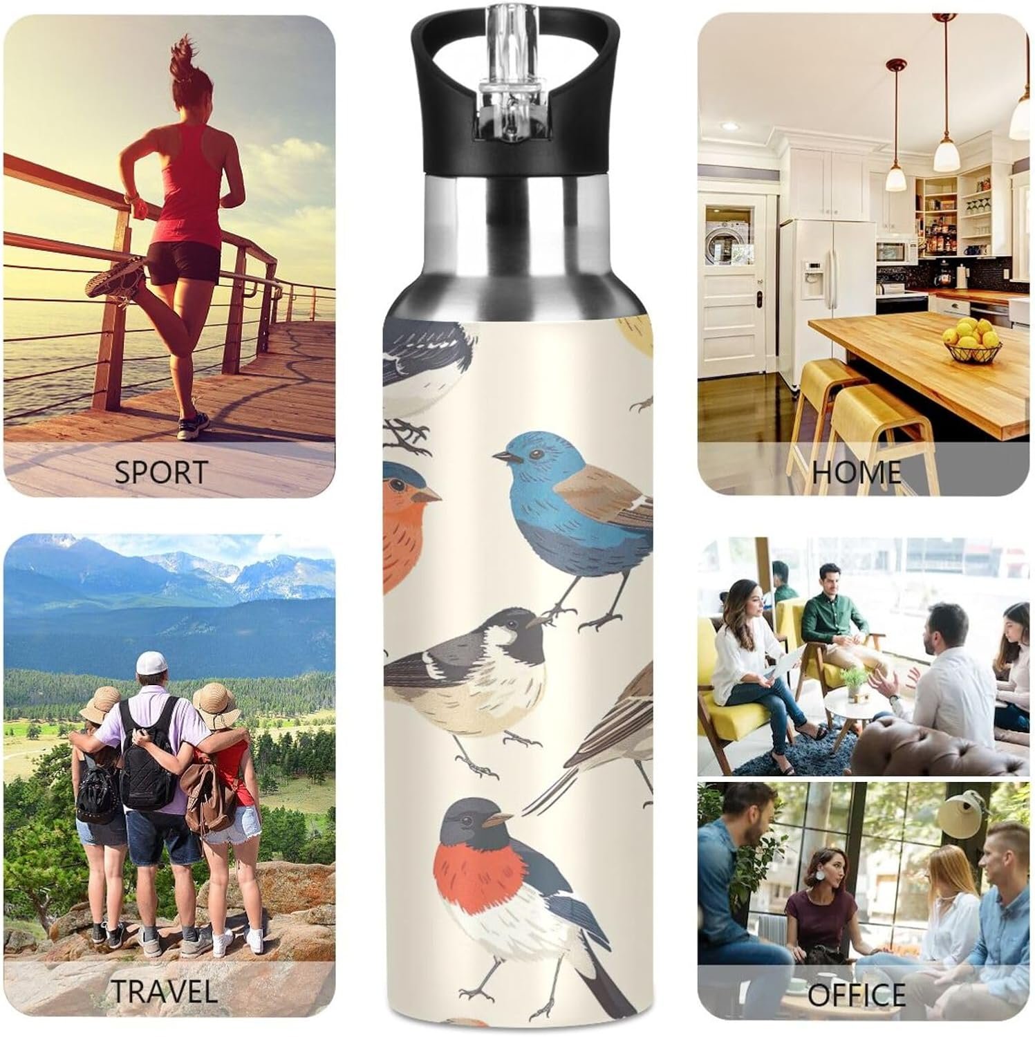 YETTASBIN Bird Water Bottle with Straw Lid 32oz Leakproof Vacuum Insulated Stainless Steel Sport Water Bottles for Gym, School, Travel