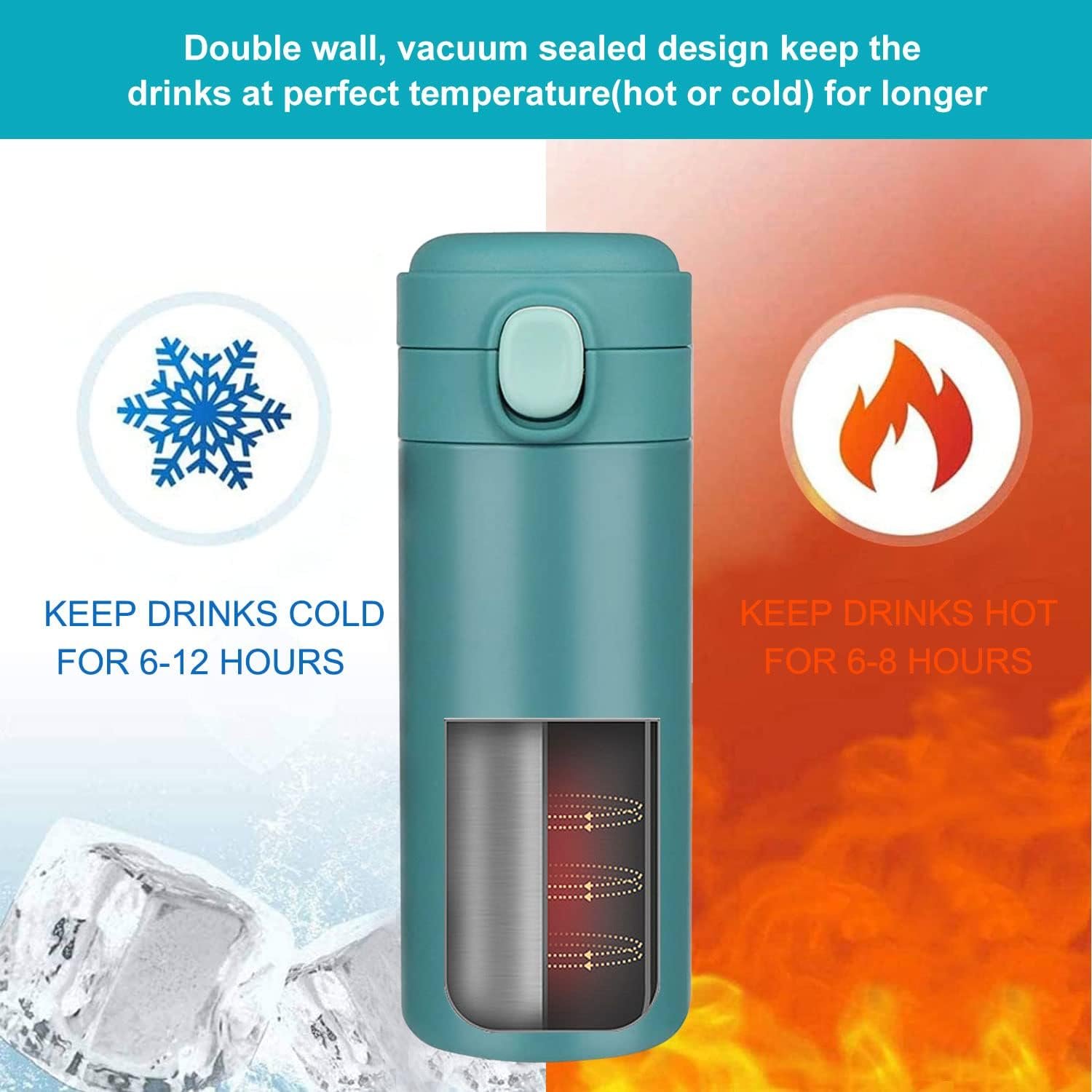 Keep Drinks Cold or Hot for Hours — Double wall, vacuum sealed design, reduce heat conduction, keep drinks cold or hot up to 6-8 hours