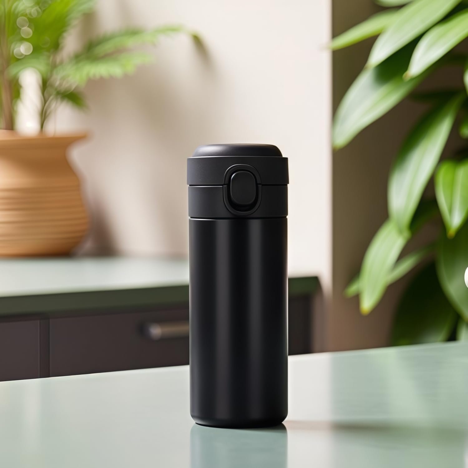 Leakproof — BPA free screw lid, along with the silicone seal ring avoid water leakage. Rubber bottom helps to prevent the coffee mug from sliding and tipping over. Slim cup body fit in most standard cup holders