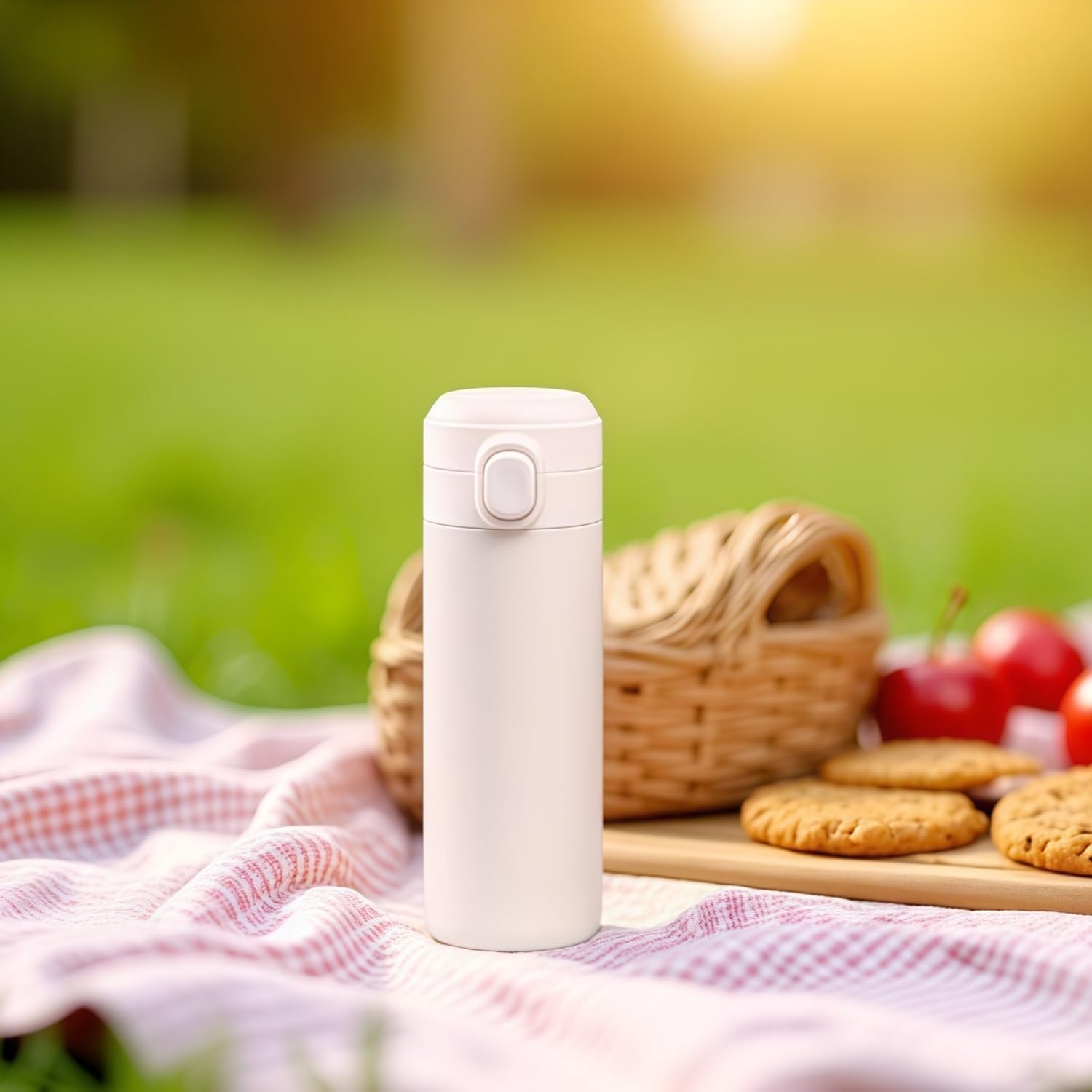 Convenient Drinking — One click opening, easy to open and clean. Round cup mouth fit the lip shape. Push up to close the lock, and push down to open the lock. Prevent accidental unlocking and pack the flask in the bag without leakage worry