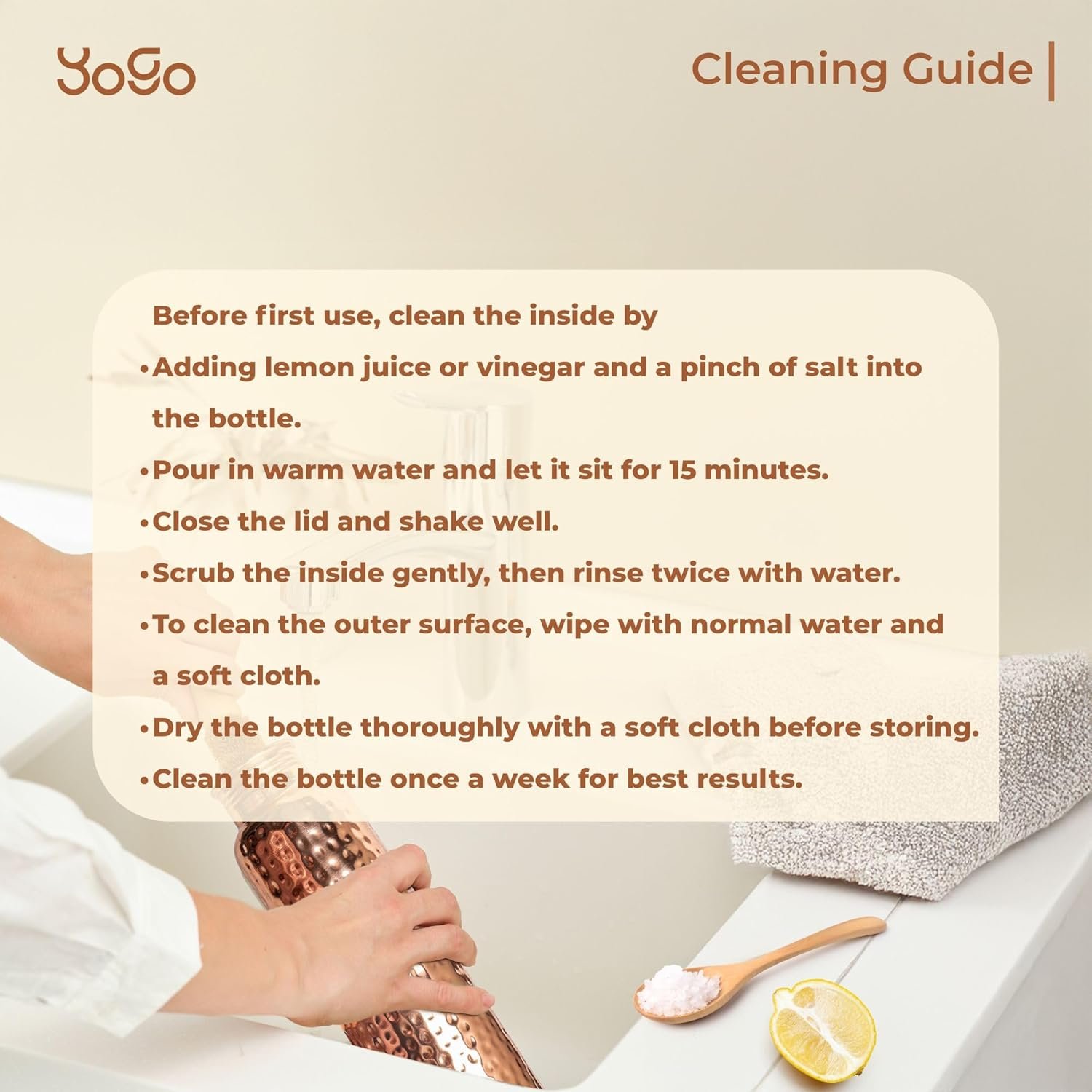 ✔ Quality You Can Trust – Yogo’s 100% copper water bottle stands apart from ordinary copper bottles. It’s a premium cooper water bottle option for anyone seeking authentic quality and daily health benefits.