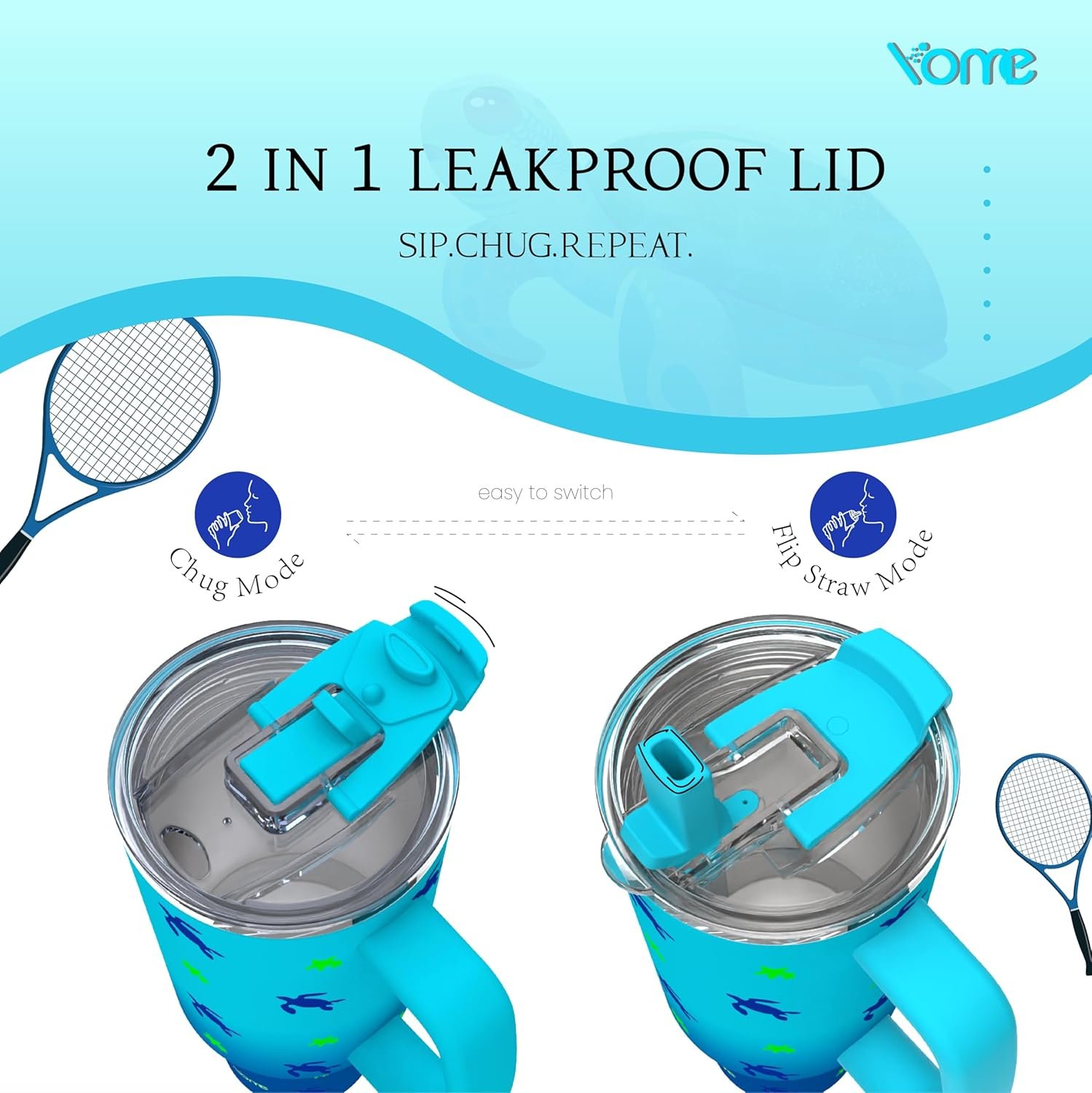 DUAL PURPOSE LID: Flip straw lid mode for easy sipping on the go, chug lid mode for quick gulps after workouts, Switch between modes in seconds!