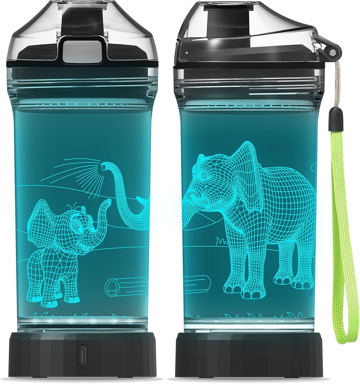 YuanDian Elephant Gift, Light Up Kids Animal Water Bottle – 14 OZ 400ml Tritan BPA Free – Cool Drink Bottles Gift for School Kids Boy Girl Child Men