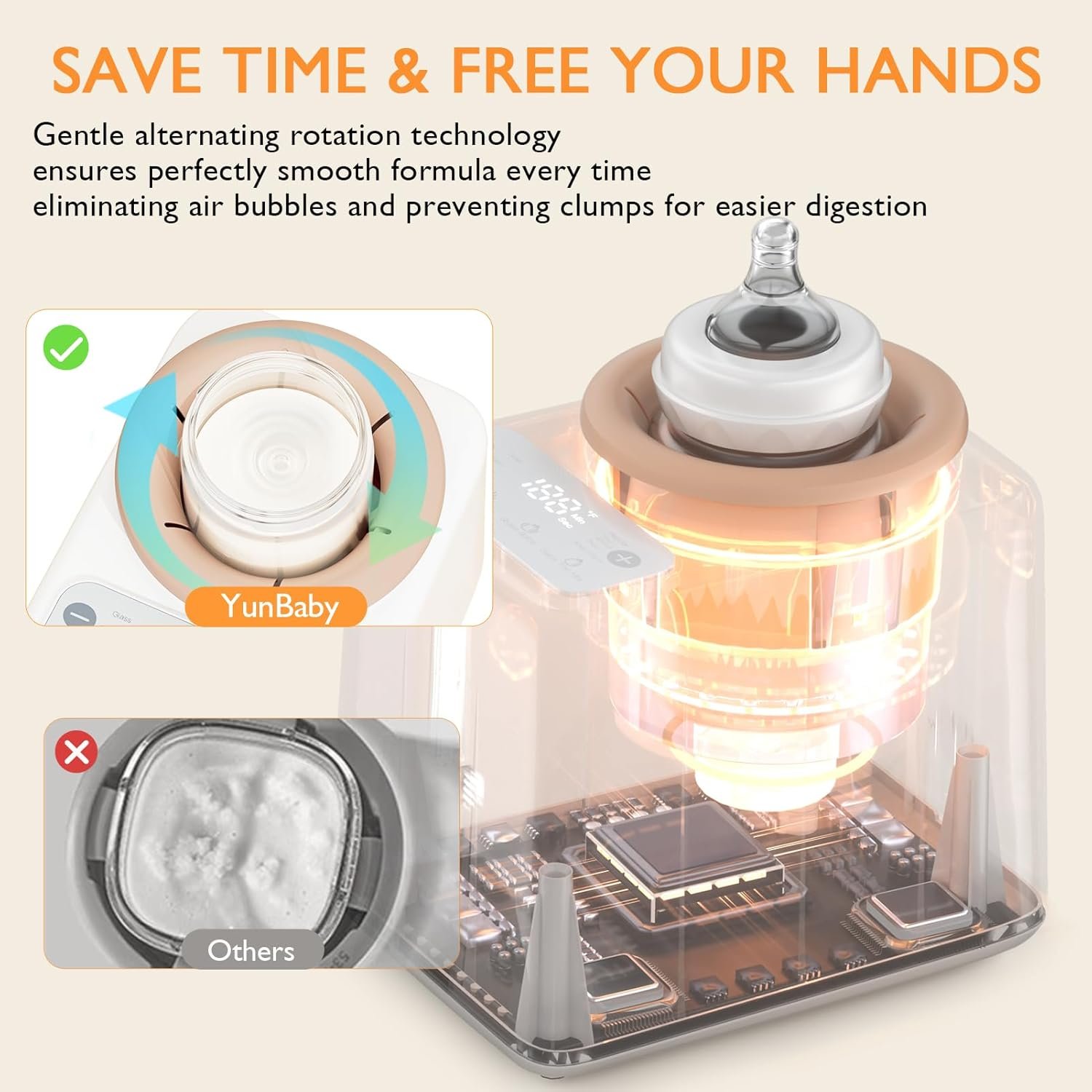 YunBaby Waterless Baby Bottle Shaker and Warmer, Fast Heating & Automatic Mixing for Formula, Adjustable Temperature, Quiet, Easy to Clean, Fits All Bottles