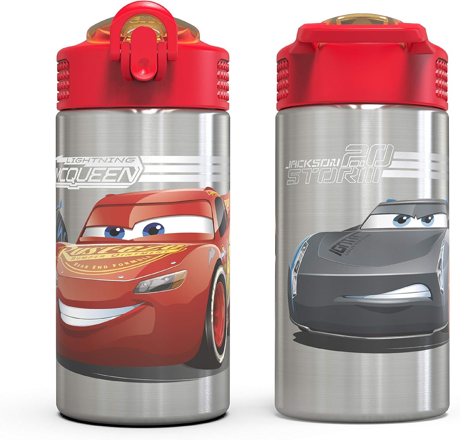 Zak Designs Disney Cars 3 – Stainless Steel Water Bottle with One Hand Operation Action Lid and Built-in Carrying Loop, Kids Water Bottle with Straw Spout is Perfect for Kids (15.5 oz, 18/8)