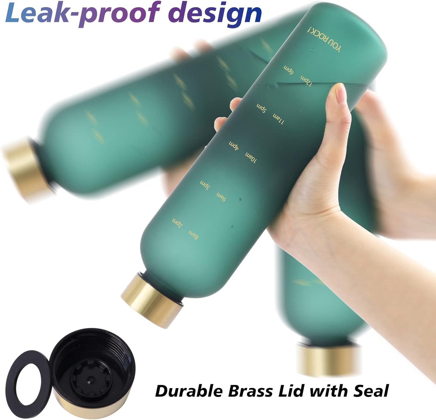 【Leakproof&Durable】The aesthetic water bottles comes with brass covered lid. The bottle is 360 degree leak proof and it is also drop resistant.