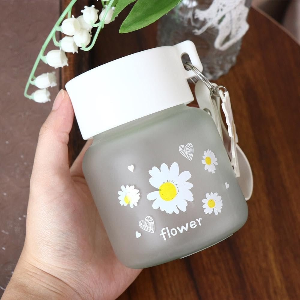 Exquisite design, pleasing to the eye: This 350ml lovely little Daisy glass bottle, using delicate Daisy pattern design, the bottle is painted with fresh and elegant small daisies, soft and warm colors, for your daily drinking water to add a touch of natural style, whether placed on the desk or at home, can become a beautiful landscape.
