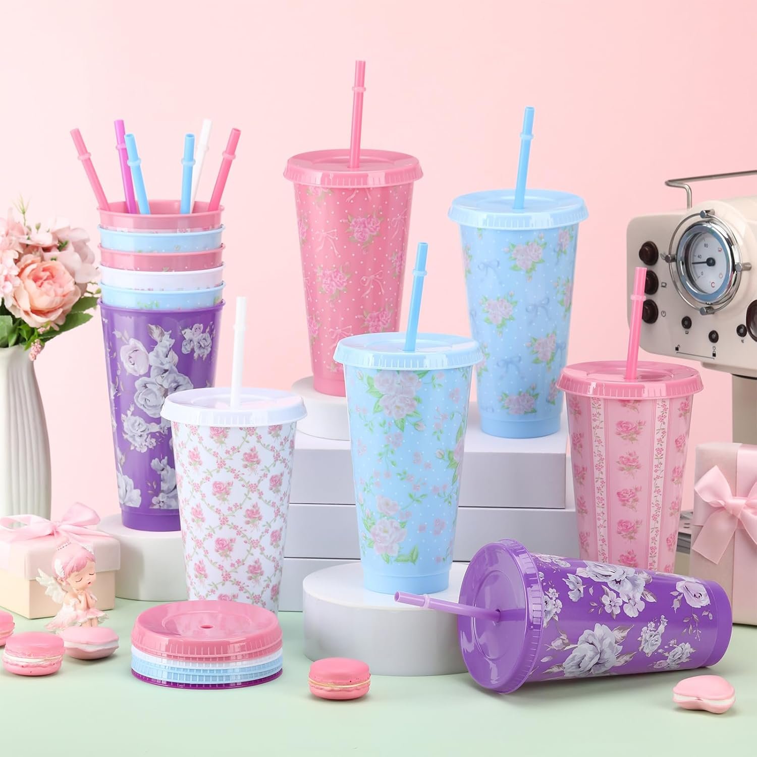 Unique floral bow Theme: these reusable cups with lids and straws are printed with 6 different designs of flowers, and the style is not only a convenient beverage carrier, but also a source of inspiration and a conversation starter, making every sip of your drink enjoyable
