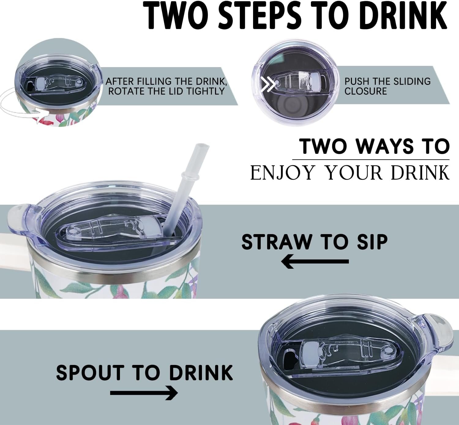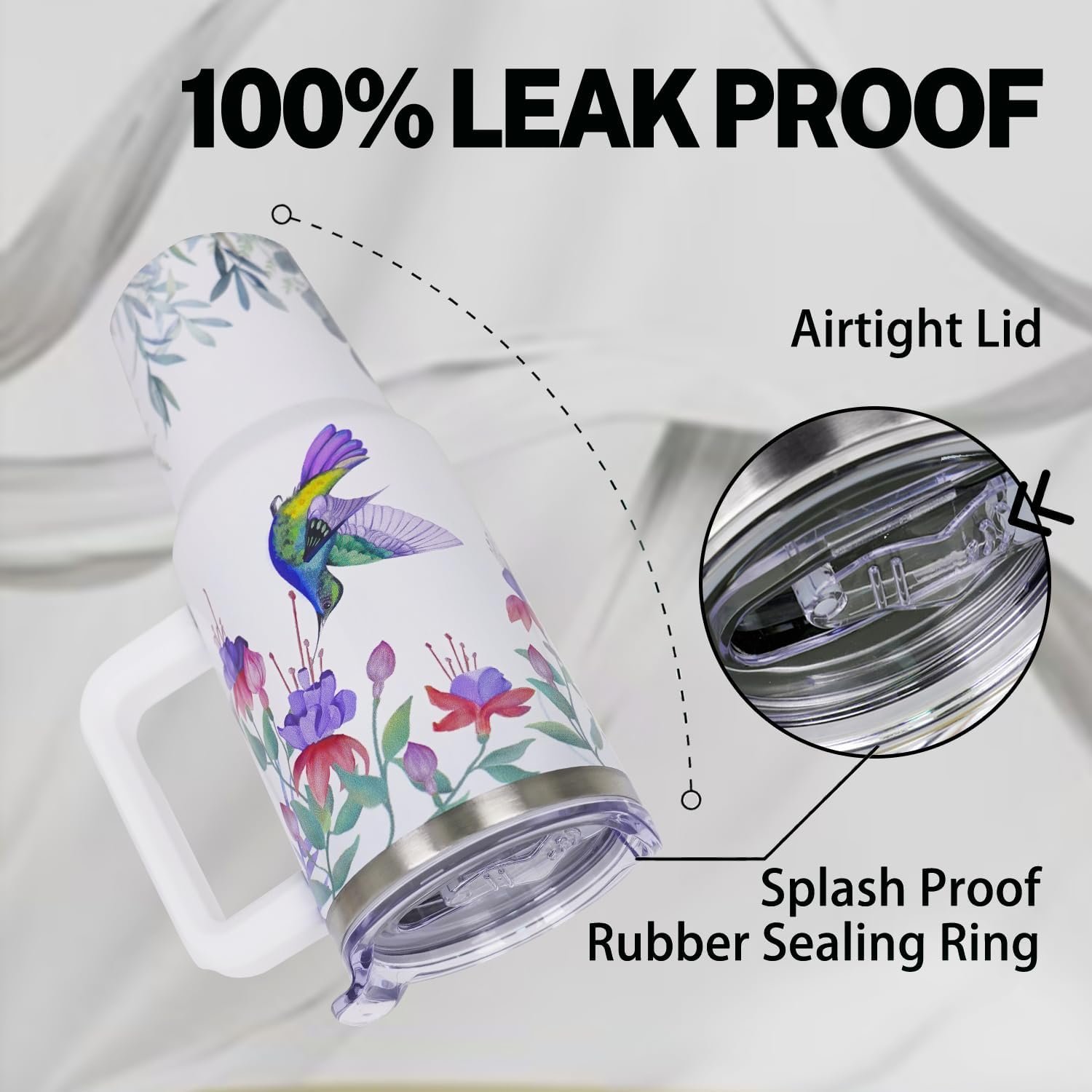 BPA-Free Leak-proof Lid: The hummingbird coffee tumbler adopts a newly upgraded double-thread twist design to keep the cup completely sealed and sweat-proof. Easily handle the jitters and bumps of car travel or sports.