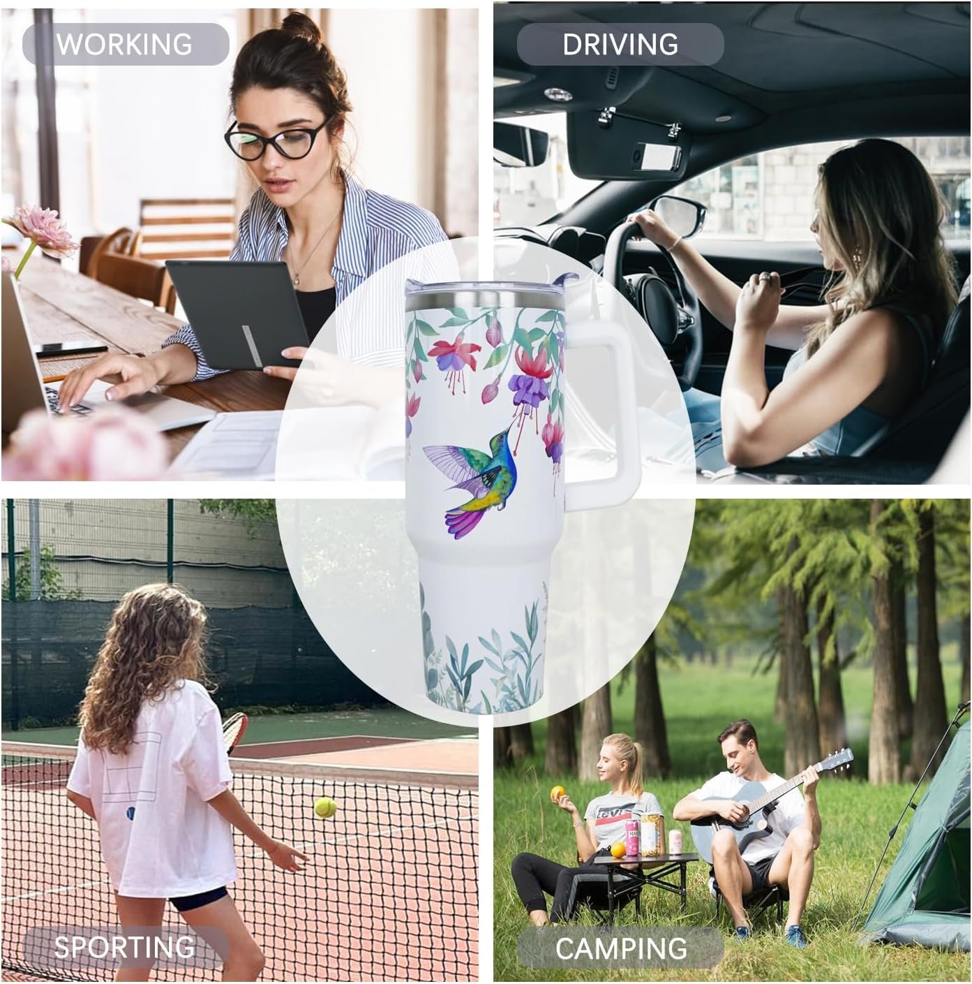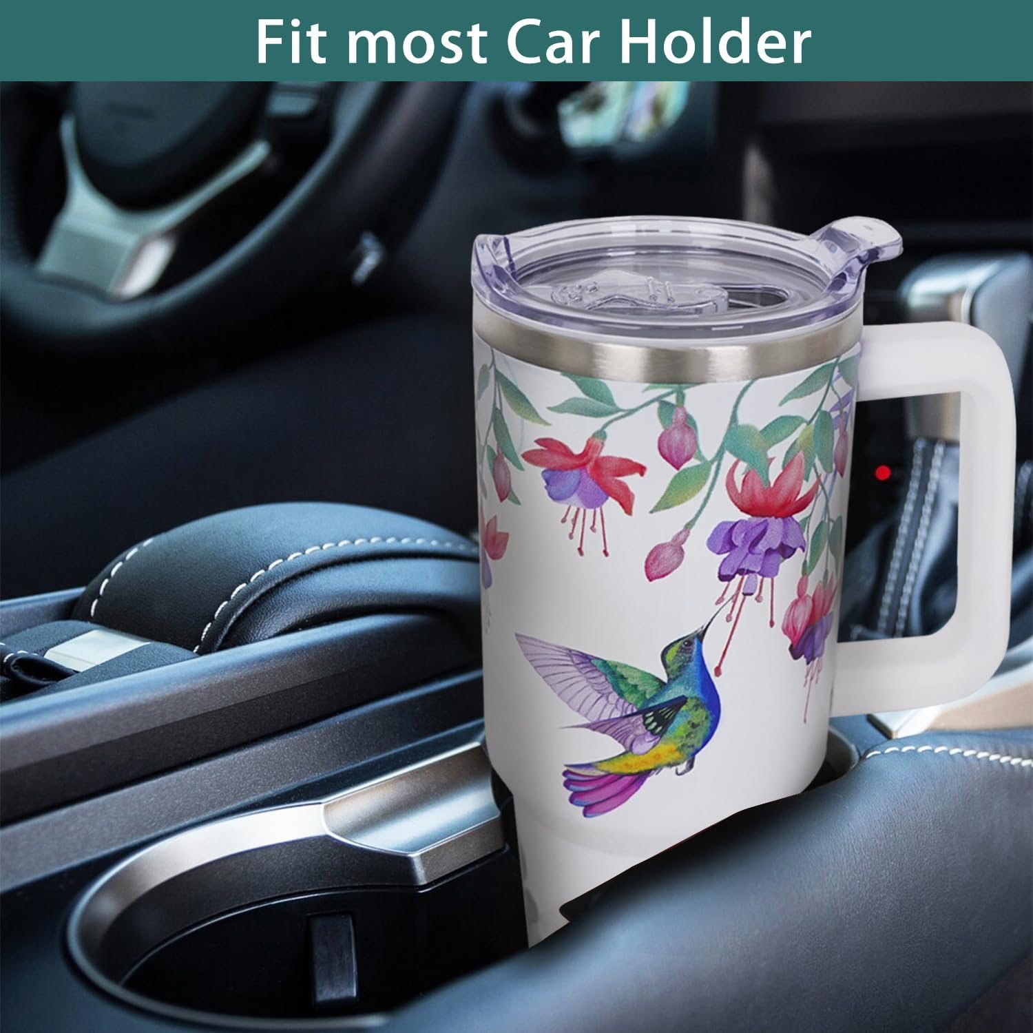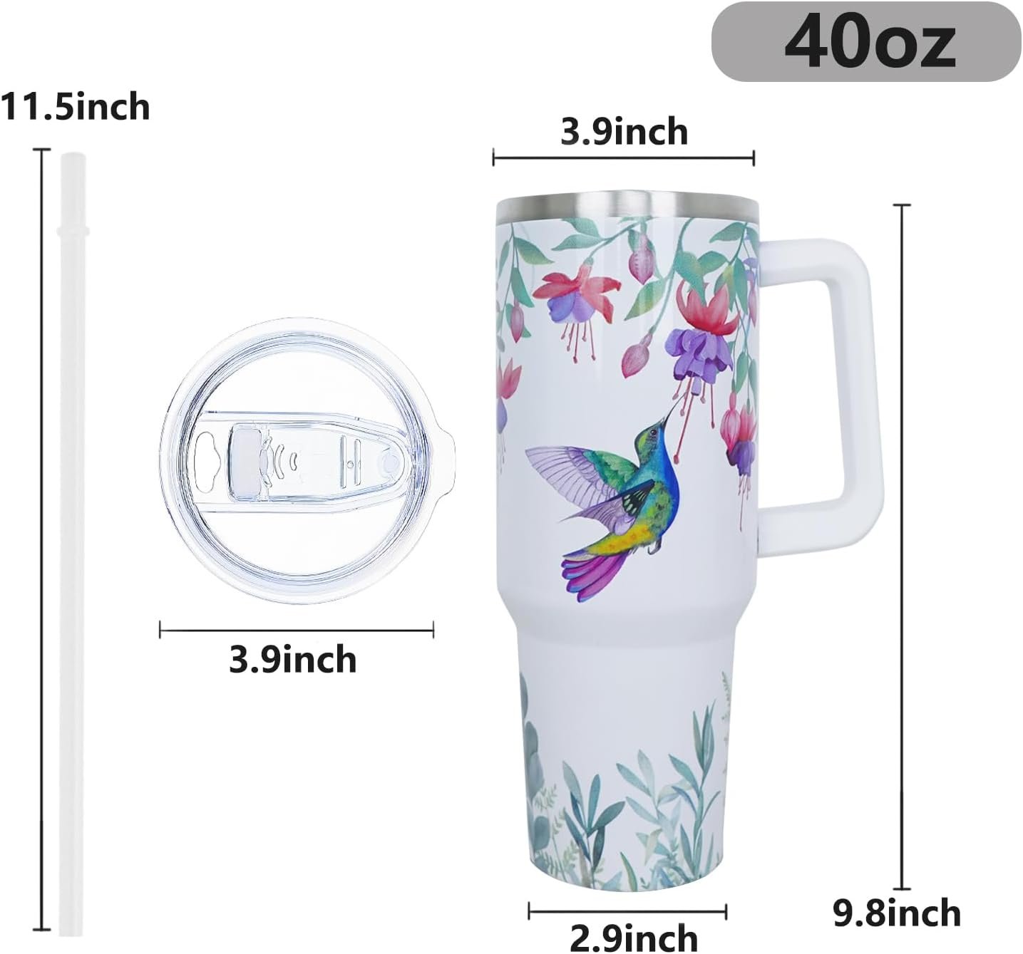 Easy to Clean & Sustainability: This hummingbird tumbler with handle is anti-fade after being used for a long time, and also includes a reusable drink straw. You can reuse the coffee travel mug to replace millions of single-use plastic bottles. The wide opening allows easyly washing and quick filling.