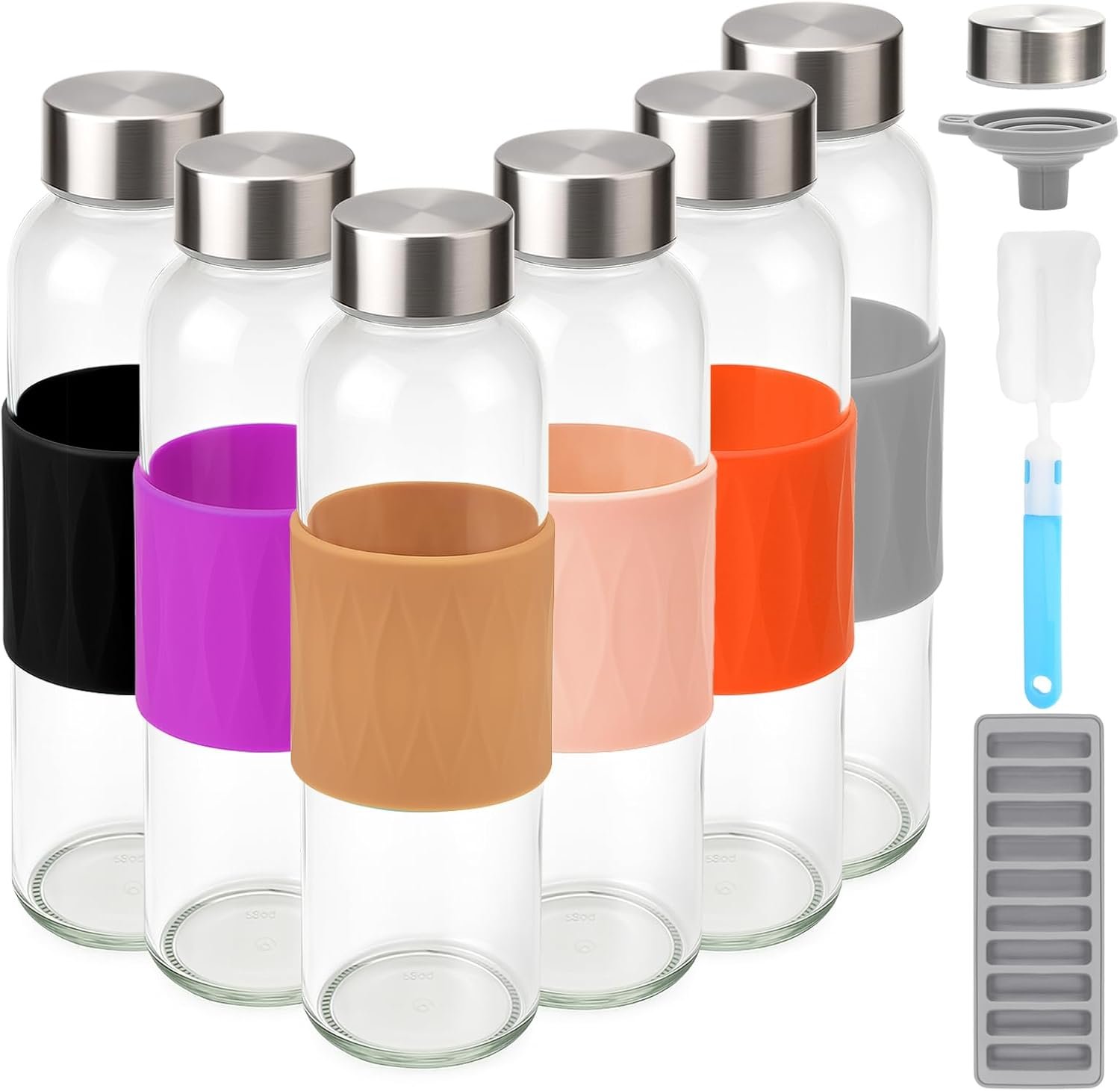 Color-Coded Silicone Sleeves for Easy Grip & Personal Use: Each of our glass bottles features a vibrant silicone band that provides a non-slip grip and protects your hands from the cold when taking the glass juice bottles straight from the refrigerator. The different colors make it easy to assign these water bottles to individual family members or use each color for different beverages – eliminating mix-ups and keeping daily use organized.