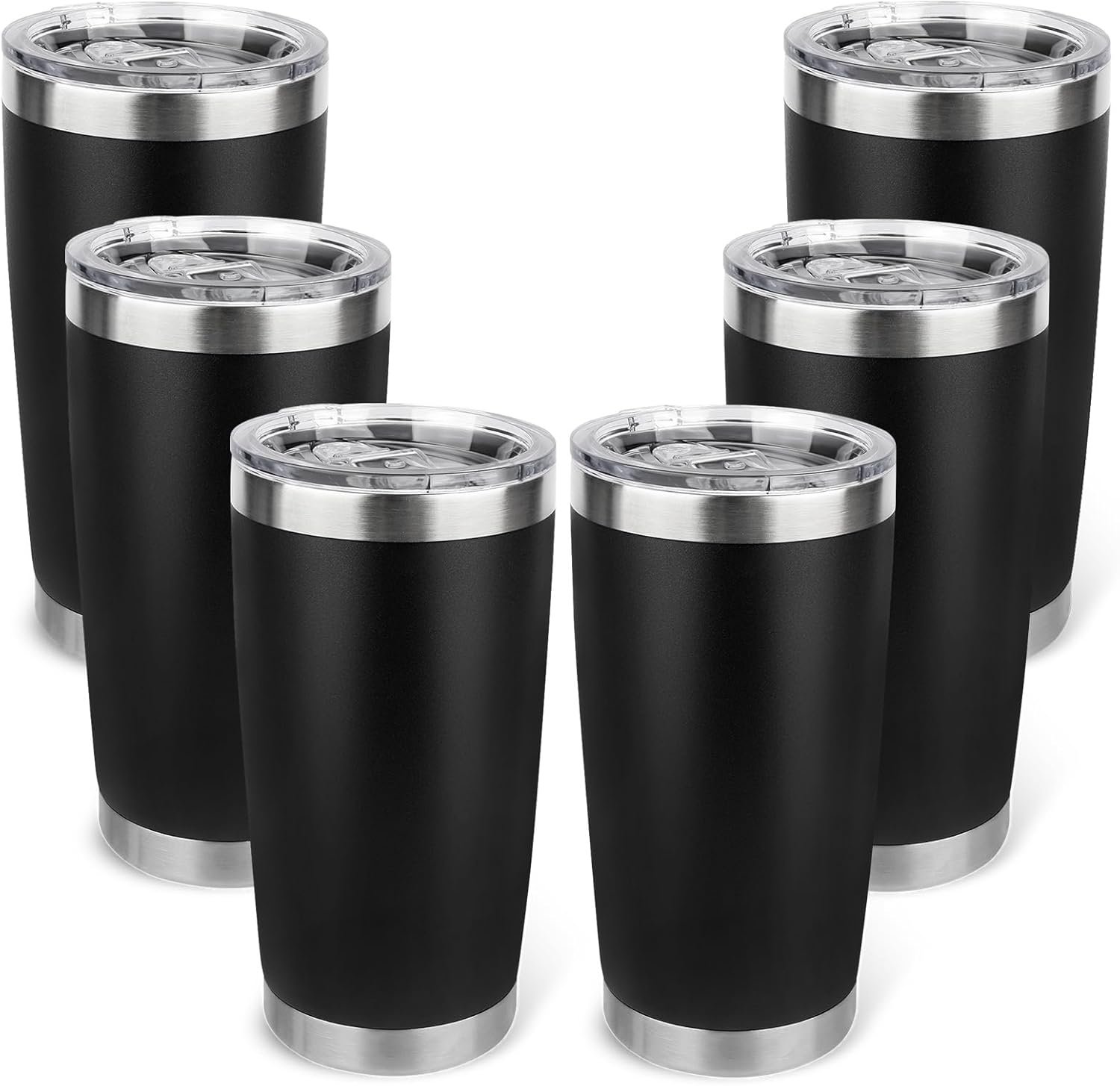 Zynkify 20oz Stainless Steel Tumbler Bulk with Lid, Travel Mug – Double Wall Vacuum Powder Coated Cup – Black, 6 Pack